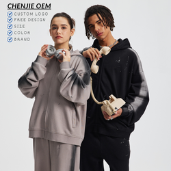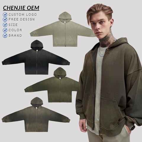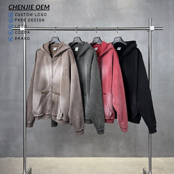 Felpa con cappuccio squadrata personalizzata da uomo con cappuccio sbiadito da sole per la produzione di OEM pesante in cotone Terry con cappuccio aderente con cerniera